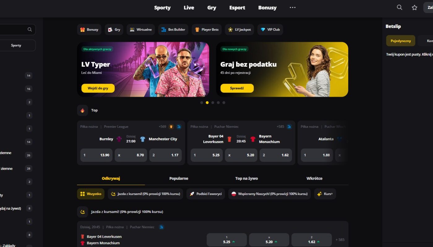 LV BET pozostaje w 2026 roku wzorcowym przykładem tego, jak powinien wyglądać pakiet powitalny legalnego bukmachera w Polsce – hojny, wielowarstwowy, przejrzysty i dostosowany do różnych profili graczy. Pamiętaj, że zakłady bukmacherskie dostępne są wyłącznie dla osób pełnoletnich, a korzystanie z bonusów powinno odbywać się w ramach zasad odpowiedzialnej gry.
